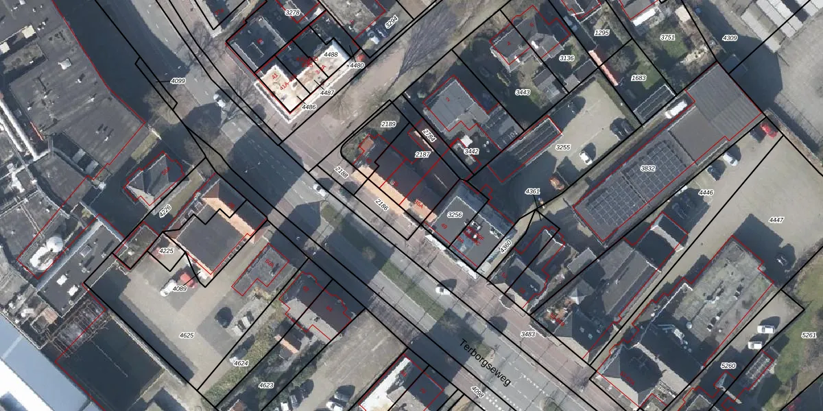 Terborgseweg 45-A is gelegen op kadastraal perceel DTC01M2187. Deze kadastrale aanduiding is uniek en wordt gebruikt door het Kadaster om eigendomsrechten en andere zakelijke rechten vast te leggen. Het perceel maakt onderdeel uit van de kadastrale gemeente Ambt-Doetinchem.