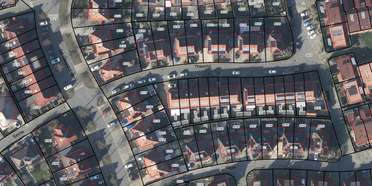 Het perceel waarop Theems 6 staat heeft een oppervlakte van 132 m². Dit is een middelgroot perceel. De perceeloppervlakte wordt geregistreerd door het Kadaster. Gedetailleerde informatie over de maten van dit perceel kunt u vinden in het rapport Kadastrale kaart met maatvoering van Theems 6.