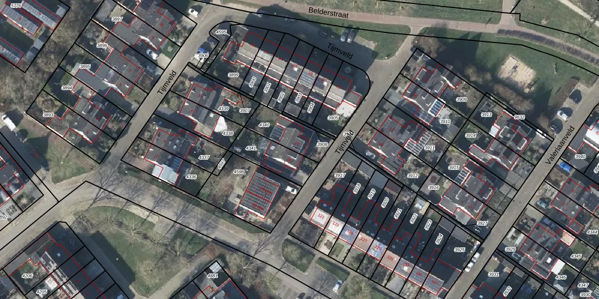 Het perceel waarop Tijmveld 24 staat heeft een oppervlakte van 262 m². Dit is een middelgroot perceel. De perceeloppervlakte wordt geregistreerd door het Kadaster. Gedetailleerde informatie over de maten van dit perceel kunt u vinden in het rapport Kadastrale kaart met maatvoering van Tijmveld 24.