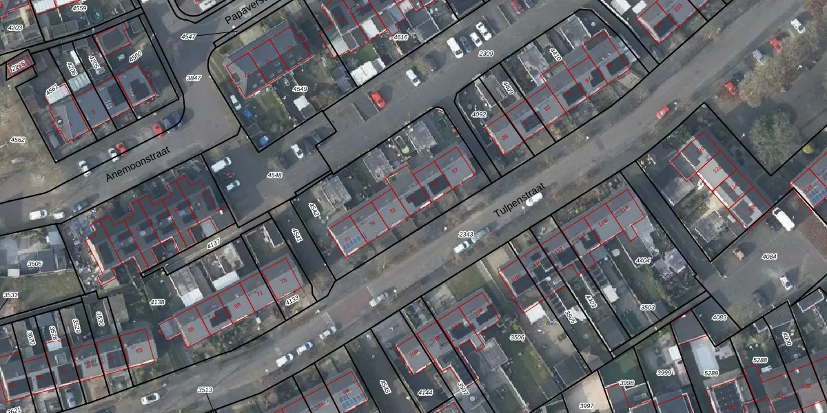 Het perceel waarop Tulpenstraat 83 staat heeft een oppervlakte van 990 m². Dit is een groot perceel. De perceeloppervlakte wordt geregistreerd door het Kadaster. Gedetailleerde informatie over de maten van dit perceel kunt u vinden in het rapport Kadastrale kaart met maatvoering van Tulpenstraat 83.