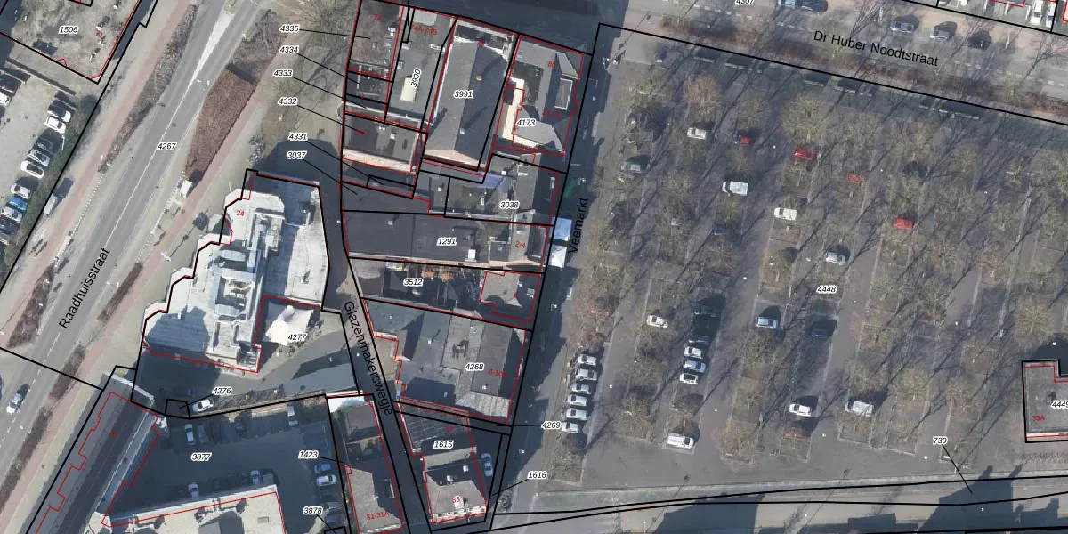 Het perceel waarop Veemarkt 2 staat heeft een oppervlakte van 354 m². Dit is een groot perceel. De perceeloppervlakte wordt geregistreerd door het Kadaster. Gedetailleerde informatie over de maten van dit perceel kunt u vinden in het rapport Kadastrale kaart met maatvoering van Veemarkt 2.