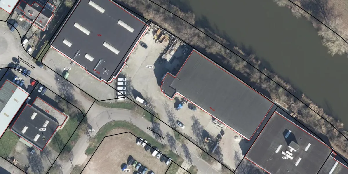 Het perceel waarop Voltastraat 50 staat heeft een oppervlakte van 4041 m². Dit is een zeer groot perceel. De perceeloppervlakte wordt geregistreerd door het Kadaster. Gedetailleerde informatie over de maten van dit perceel kunt u vinden in het rapport Kadastrale kaart met maatvoering van Voltastraat 50.