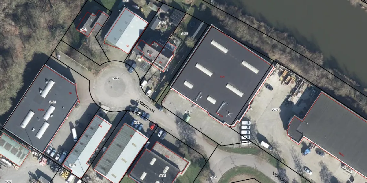 Het perceel waarop Voltastraat 52-A staat heeft een oppervlakte van 2130 m². Dit is een zeer groot perceel. De perceeloppervlakte wordt geregistreerd door het Kadaster. Gedetailleerde informatie over de maten van dit perceel kunt u vinden in het rapport Kadastrale kaart met maatvoering van Voltastraat 52-A.