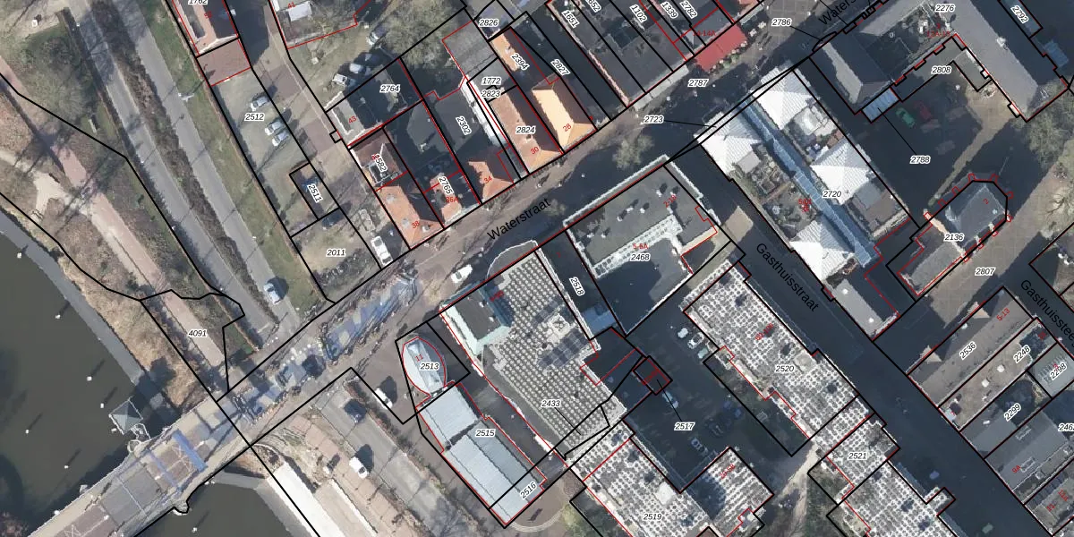 Het perceel waarop Waterstraat 9-A staat heeft een oppervlakte van 1024 m². Dit is een zeer groot perceel. De perceeloppervlakte wordt geregistreerd door het Kadaster. Gedetailleerde informatie over de maten van dit perceel kunt u vinden in het rapport Kadastrale kaart met maatvoering van Waterstraat 9-A.