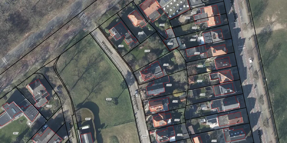 Het perceel waarop Worpplein 13 staat heeft een oppervlakte van 460 m². Dit is een groot perceel. De perceeloppervlakte wordt geregistreerd door het Kadaster. Gedetailleerde informatie over de maten van dit perceel kunt u vinden in het rapport Kadastrale kaart met maatvoering van Worpplein 13.