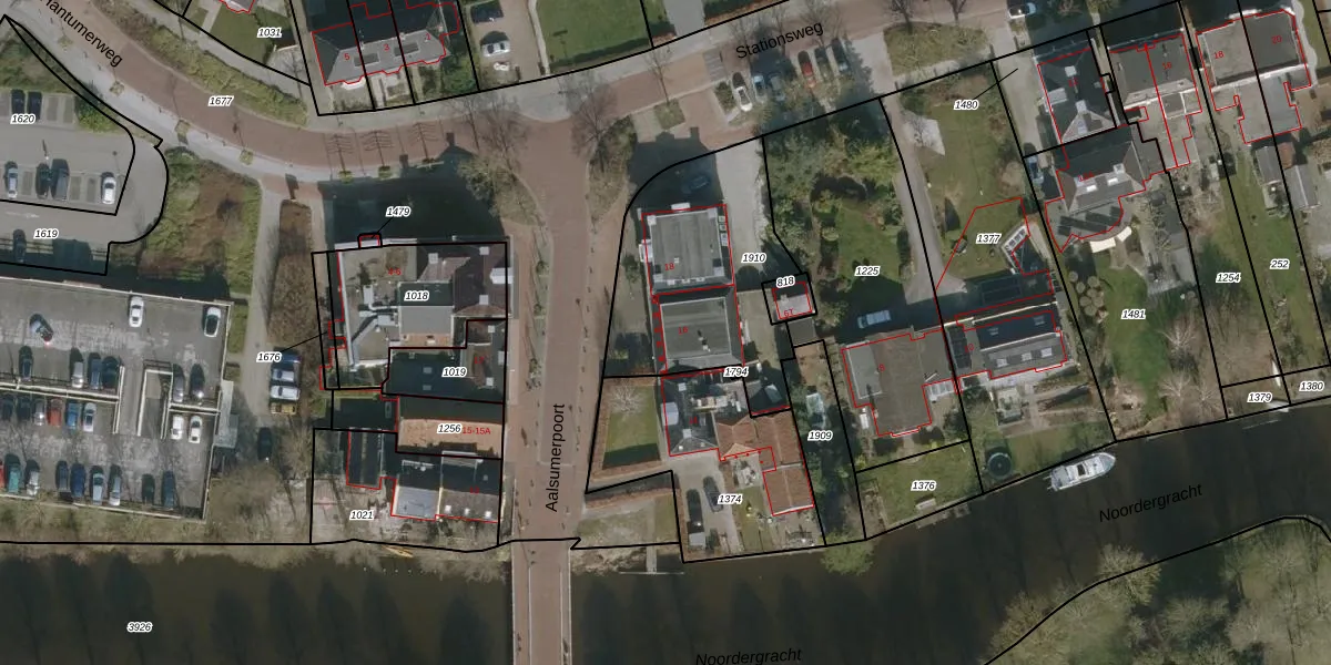 Het perceel waarop Aalsumerpoort 16 staat heeft een oppervlakte van 799 m². Dit is een groot perceel. De perceeloppervlakte wordt geregistreerd door het Kadaster. Gedetailleerde informatie over de maten van dit perceel kunt u vinden in het rapport Kadastrale kaart met maatvoering van Aalsumerpoort 16.