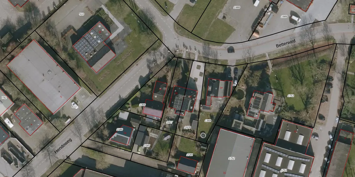 Het perceel waarop Betterwird 18 staat heeft een oppervlakte van 382 m². Dit is een groot perceel. De perceeloppervlakte wordt geregistreerd door het Kadaster. Gedetailleerde informatie over de maten van dit perceel kunt u vinden in het rapport Kadastrale kaart met maatvoering van Betterwird 18.