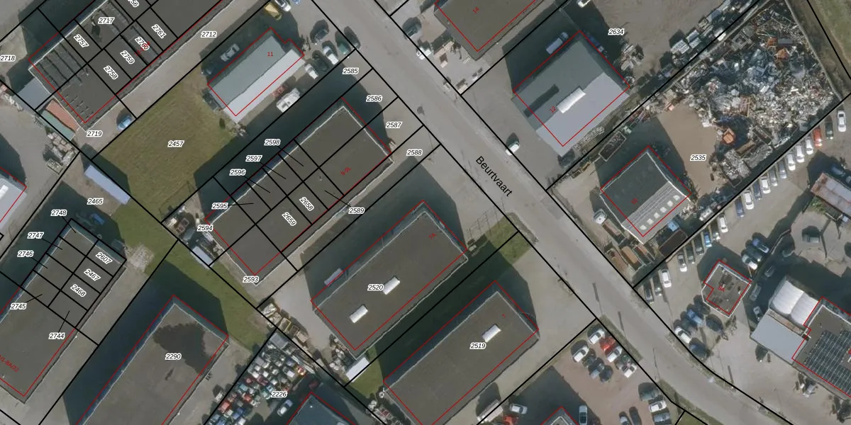 Het perceel waarop Beurtvaart 7-A staat heeft een oppervlakte van 1557 m². Dit is een zeer groot perceel. De perceeloppervlakte wordt geregistreerd door het Kadaster. Gedetailleerde informatie over de maten van dit perceel kunt u vinden in het rapport Kadastrale kaart met maatvoering van Beurtvaart 7-A.