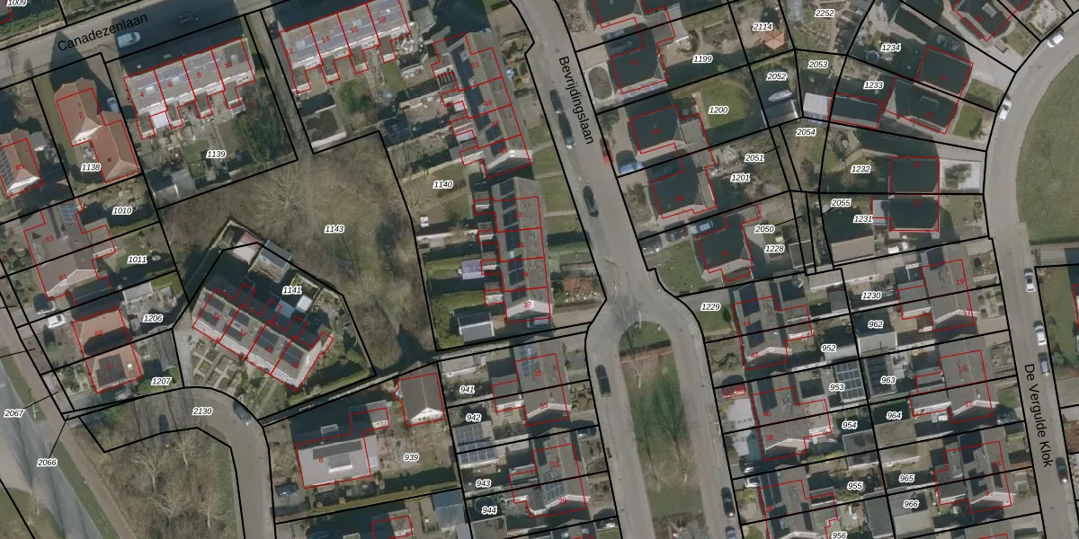 Het perceel waarop Bevrijdingslaan 39 staat heeft een oppervlakte van 2575 m². Dit is een zeer groot perceel. De perceeloppervlakte wordt geregistreerd door het Kadaster. Gedetailleerde informatie over de maten van dit perceel kunt u vinden in het rapport Kadastrale kaart met maatvoering van Bevrijdingslaan 39.
