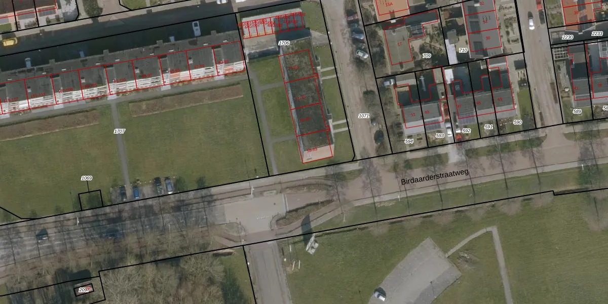 Het perceel waarop Birdaarderstraatweg 59 staat heeft een oppervlakte van 1580 m². Dit is een zeer groot perceel. De perceeloppervlakte wordt geregistreerd door het Kadaster. Gedetailleerde informatie over de maten van dit perceel kunt u vinden in het rapport Kadastrale kaart met maatvoering van Birdaarderstraatweg 59.