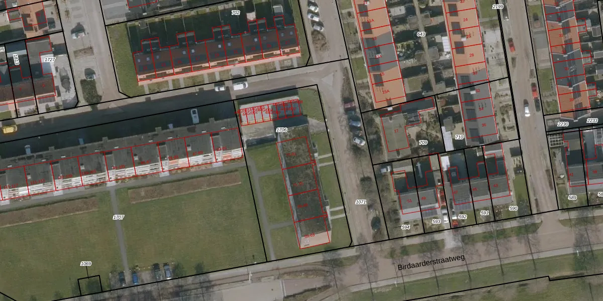 Het perceel waarop Birdaarderstraatweg 77 staat heeft een oppervlakte van 1580 m². Dit is een zeer groot perceel. De perceeloppervlakte wordt geregistreerd door het Kadaster. Gedetailleerde informatie over de maten van dit perceel kunt u vinden in het rapport Kadastrale kaart met maatvoering van Birdaarderstraatweg 77.