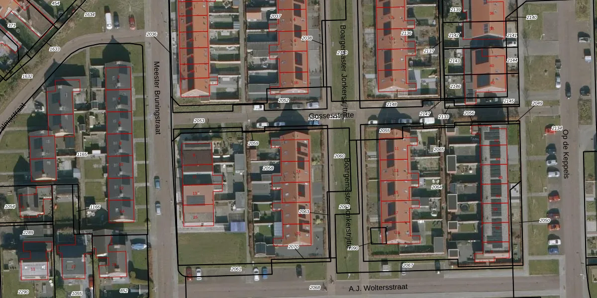 Het perceel waarop Boargemaster Jonkerstrjitte 12 staat heeft een oppervlakte van 2250 m². Dit is een zeer groot perceel. De perceeloppervlakte wordt geregistreerd door het Kadaster. Gedetailleerde informatie over de maten van dit perceel kunt u vinden in het rapport Kadastrale kaart met maatvoering van Boargemaster Jonkerstrjitte 12.