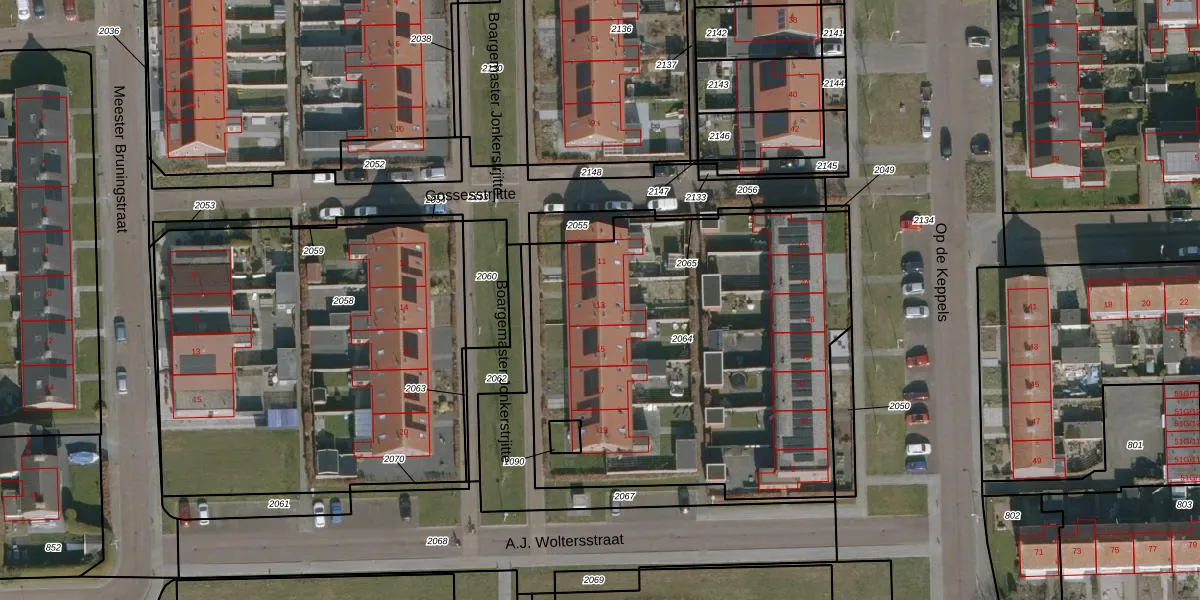 Het perceel waarop Boargemaster Jonkerstrjitte 13 staat heeft een oppervlakte van 2262 m². Dit is een zeer groot perceel. De perceeloppervlakte wordt geregistreerd door het Kadaster. Gedetailleerde informatie over de maten van dit perceel kunt u vinden in het rapport Kadastrale kaart met maatvoering van Boargemaster Jonkerstrjitte 13.