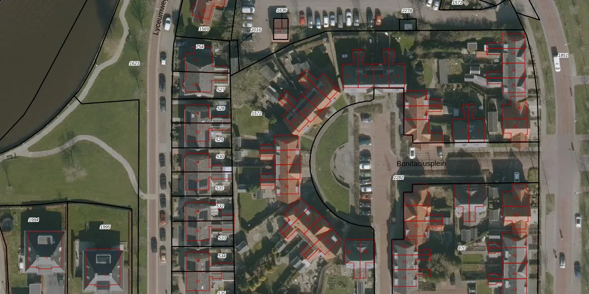 Het perceel waarop Bonifaciusplein 27 staat heeft een oppervlakte van 5420 m². Dit is een zeer groot perceel. De perceeloppervlakte wordt geregistreerd door het Kadaster. Gedetailleerde informatie over de maten van dit perceel kunt u vinden in het rapport Kadastrale kaart met maatvoering van Bonifaciusplein 27.