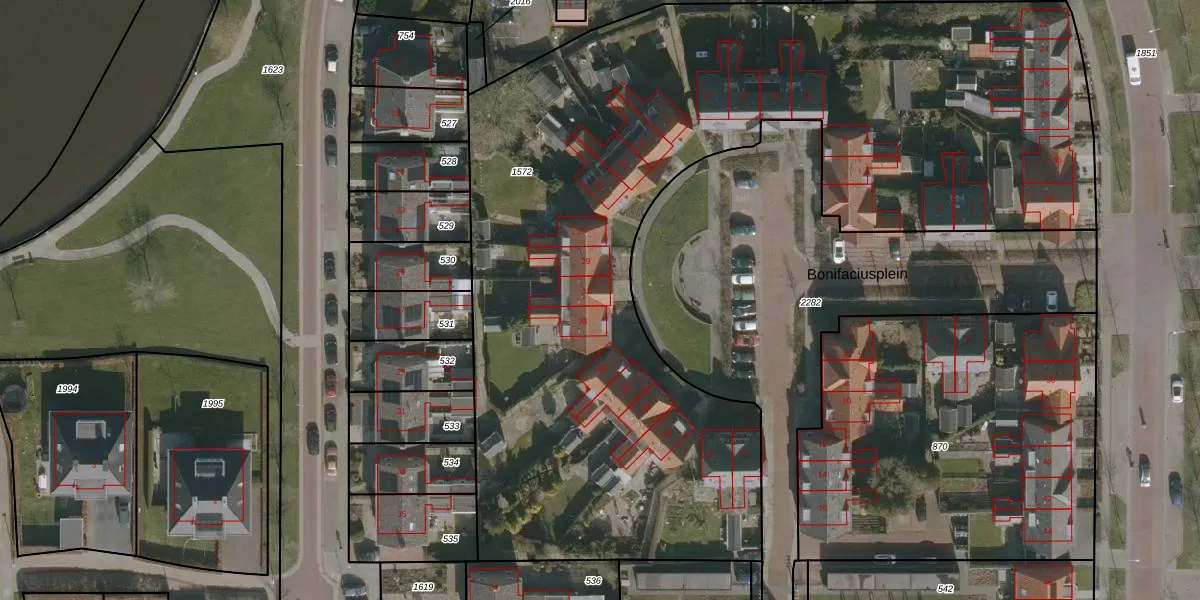 Het perceel waarop Bonifaciusplein 31 staat heeft een oppervlakte van 5420 m². Dit is een zeer groot perceel. De perceeloppervlakte wordt geregistreerd door het Kadaster. Gedetailleerde informatie over de maten van dit perceel kunt u vinden in het rapport Kadastrale kaart met maatvoering van Bonifaciusplein 31.