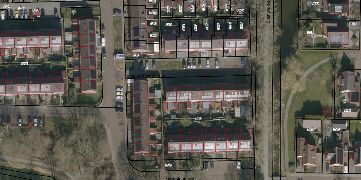 Het perceel waarop Boterbloemstraat 4 staat heeft een oppervlakte van 3184 m². Dit is een zeer groot perceel. De perceeloppervlakte wordt geregistreerd door het Kadaster. Gedetailleerde informatie over de maten van dit perceel kunt u vinden in het rapport Kadastrale kaart met maatvoering van Boterbloemstraat 4.