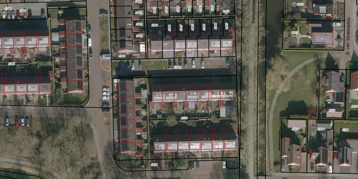 Het perceel waarop Boterbloemstraat 6 staat heeft een oppervlakte van 3184 m². Dit is een zeer groot perceel. De perceeloppervlakte wordt geregistreerd door het Kadaster. Gedetailleerde informatie over de maten van dit perceel kunt u vinden in het rapport Kadastrale kaart met maatvoering van Boterbloemstraat 6.