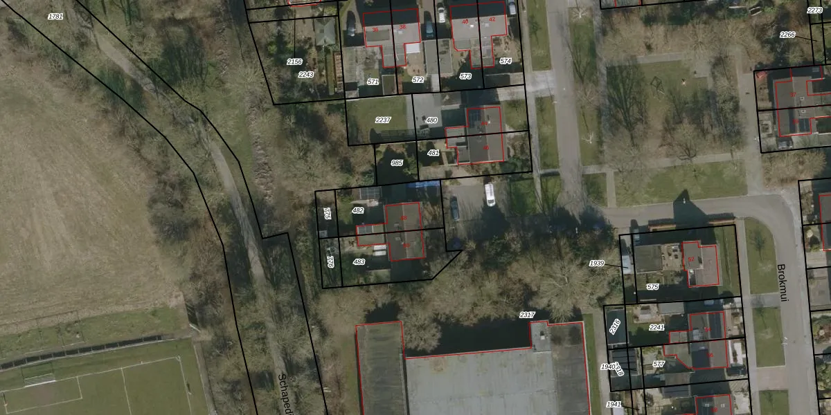 Het perceel waarop Brokmui 48 staat heeft een oppervlakte van 300 m². Dit is een groot perceel. De perceeloppervlakte wordt geregistreerd door het Kadaster. Gedetailleerde informatie over de maten van dit perceel kunt u vinden in het rapport Kadastrale kaart met maatvoering van Brokmui 48.