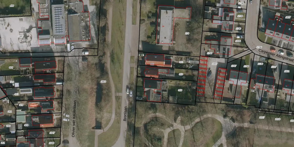 Het perceel waarop Bronlaan 16 staat heeft een oppervlakte van 330 m². Dit is een groot perceel. De perceeloppervlakte wordt geregistreerd door het Kadaster. Gedetailleerde informatie over de maten van dit perceel kunt u vinden in het rapport Kadastrale kaart met maatvoering van Bronlaan 16.