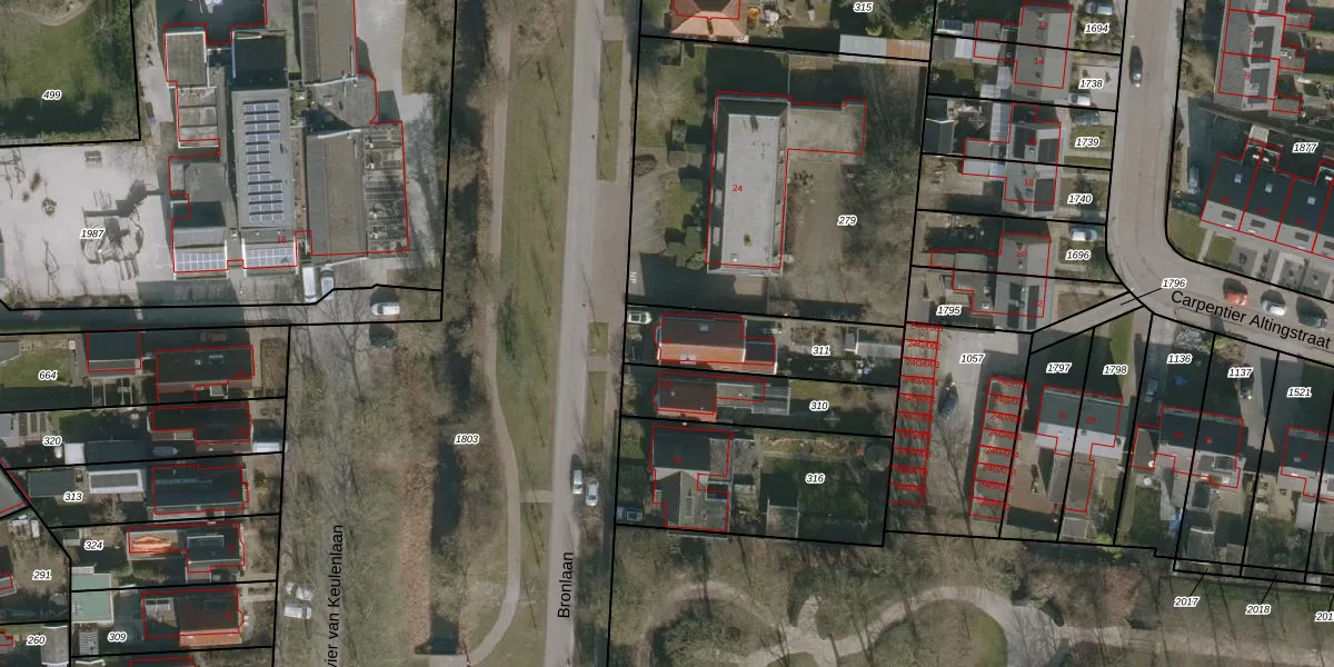 Gebruik de zoekbalk of klik op een perceel voor informatie over de adressen binnen dit perceel.