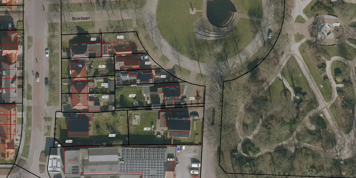 Het perceel waarop Bronlaan 8 staat heeft een oppervlakte van 647 m². Dit is een groot perceel. De perceeloppervlakte wordt geregistreerd door het Kadaster. Gedetailleerde informatie over de maten van dit perceel kunt u vinden in het rapport Kadastrale kaart met maatvoering van Bronlaan 8.