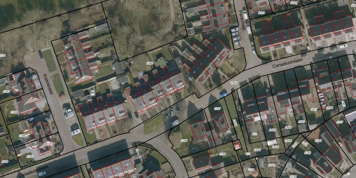 Het perceel waarop Canadezenlaan 17 staat heeft een oppervlakte van 4965 m². Dit is een zeer groot perceel. De perceeloppervlakte wordt geregistreerd door het Kadaster. Gedetailleerde informatie over de maten van dit perceel kunt u vinden in het rapport Kadastrale kaart met maatvoering van Canadezenlaan 17.
