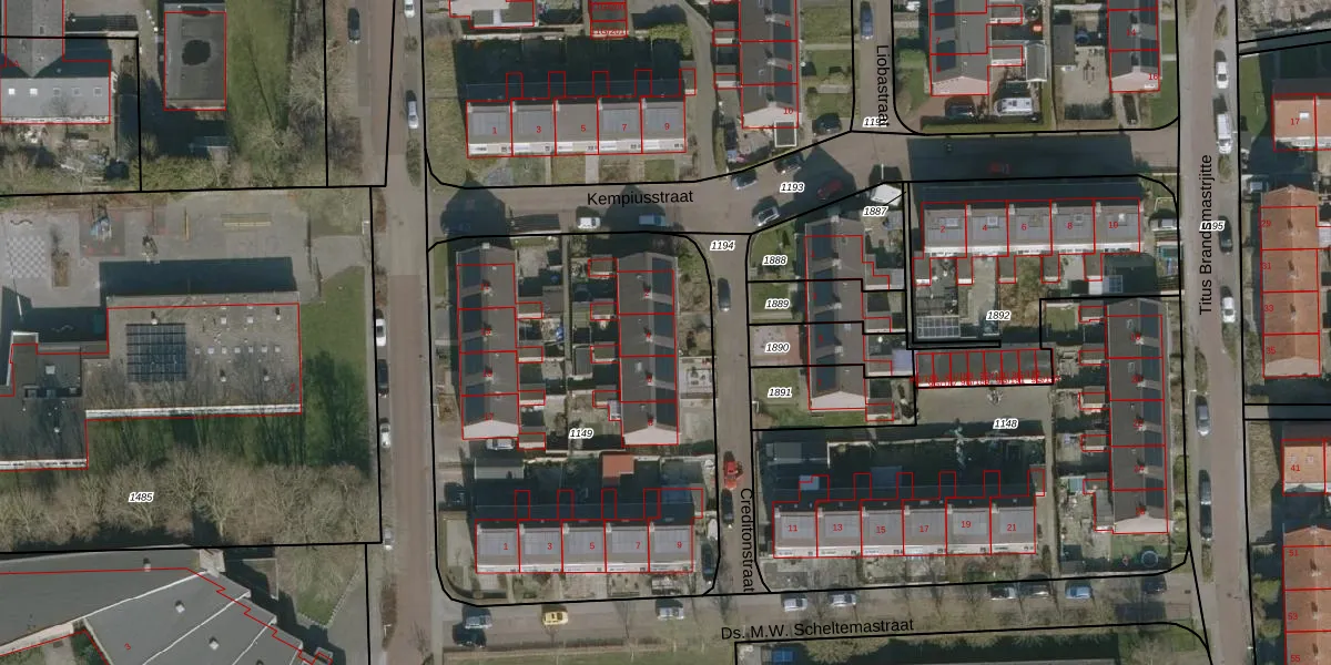 Het perceel waarop Creditonstraat 4 staat heeft een oppervlakte van 2308 m². Dit is een zeer groot perceel. De perceeloppervlakte wordt geregistreerd door het Kadaster. Gedetailleerde informatie over de maten van dit perceel kunt u vinden in het rapport Kadastrale kaart met maatvoering van Creditonstraat 4.