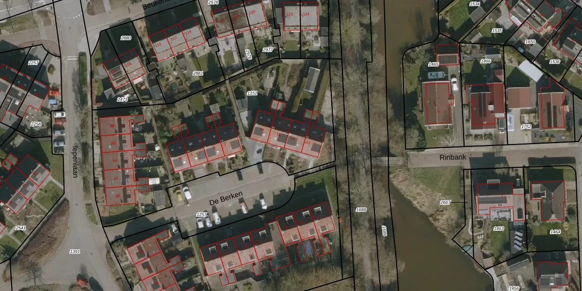 Het perceel waarop De Berken 13 staat heeft een oppervlakte van 2870 m². Dit is een zeer groot perceel. De perceeloppervlakte wordt geregistreerd door het Kadaster. Gedetailleerde informatie over de maten van dit perceel kunt u vinden in het rapport Kadastrale kaart met maatvoering van De Berken 13.