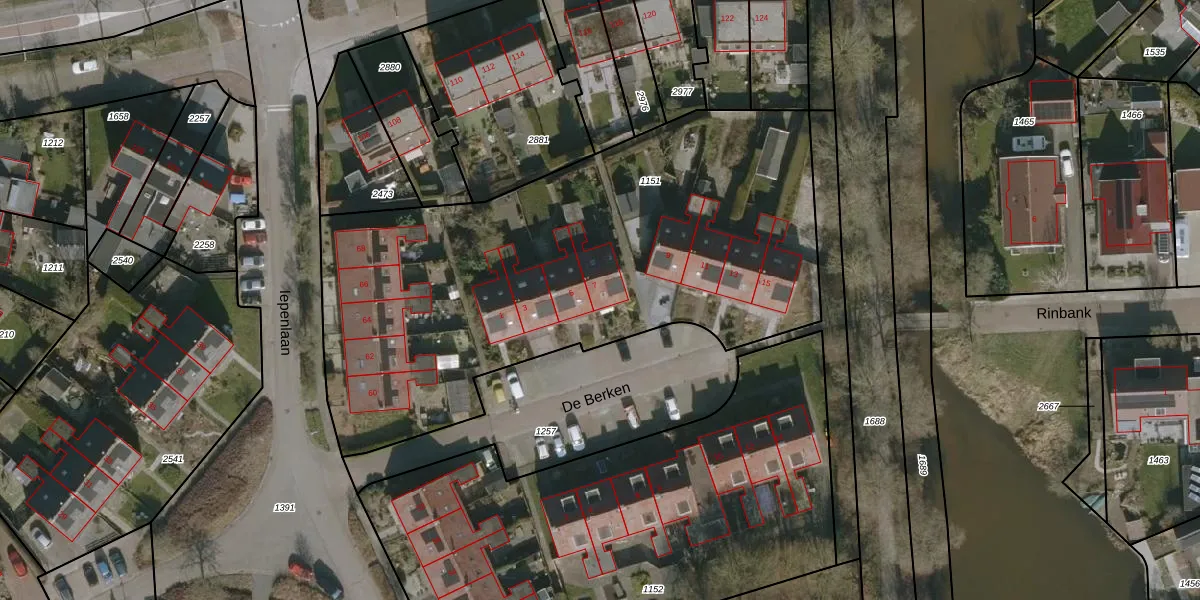 Het perceel waarop De Berken 7 staat heeft een oppervlakte van 2870 m². Dit is een zeer groot perceel. De perceeloppervlakte wordt geregistreerd door het Kadaster. Gedetailleerde informatie over de maten van dit perceel kunt u vinden in het rapport Kadastrale kaart met maatvoering van De Berken 7.