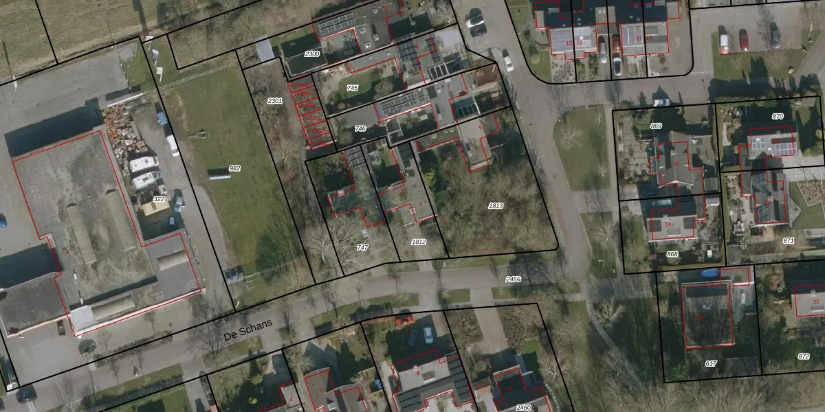 Het perceel waarop De Schans 3 staat heeft een oppervlakte van 345 m². Dit is een groot perceel. De perceeloppervlakte wordt geregistreerd door het Kadaster. Gedetailleerde informatie over de maten van dit perceel kunt u vinden in het rapport Kadastrale kaart met maatvoering van De Schans 3.
