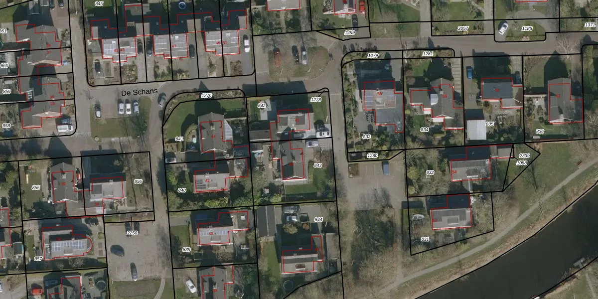 Gebruik de zoekbalk of klik op een perceel voor informatie over de adressen binnen dit perceel.