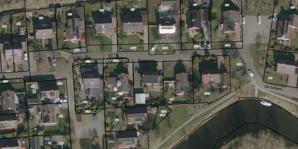 Het perceel waarop De Schans 60 staat heeft een oppervlakte van 589 m². Dit is een groot perceel. De perceeloppervlakte wordt geregistreerd door het Kadaster. Gedetailleerde informatie over de maten van dit perceel kunt u vinden in het rapport Kadastrale kaart met maatvoering van De Schans 60.