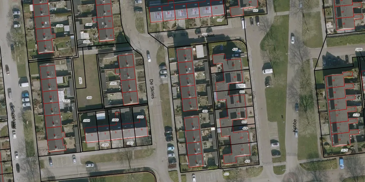 Het perceel waarop De Skries 12 staat heeft een oppervlakte van 1500 m². Dit is een zeer groot perceel. De perceeloppervlakte wordt geregistreerd door het Kadaster. Gedetailleerde informatie over de maten van dit perceel kunt u vinden in het rapport Kadastrale kaart met maatvoering van De Skries 12.