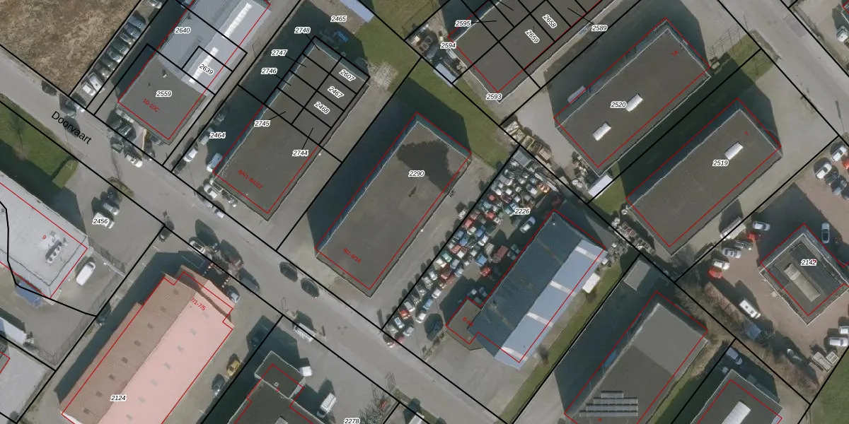 Het perceel waarop Doorvaart 8-12 staat heeft een oppervlakte van 1735 m². Dit is een zeer groot perceel. De perceeloppervlakte wordt geregistreerd door het Kadaster. Gedetailleerde informatie over de maten van dit perceel kunt u vinden in het rapport Kadastrale kaart met maatvoering van Doorvaart 8-12.