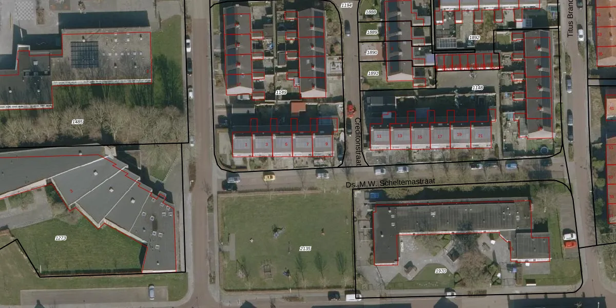 Het perceel waarop Ds. M.W. Scheltemastraat 7 staat heeft een oppervlakte van 2308 m². Dit is een zeer groot perceel. De perceeloppervlakte wordt geregistreerd door het Kadaster. Gedetailleerde informatie over de maten van dit perceel kunt u vinden in het rapport Kadastrale kaart met maatvoering van Ds. M.W. Scheltemastraat 7.
