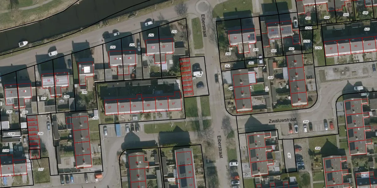 Eiberstraat 19-G350 is gelegen op kadastraal perceel DKM00E254. Deze kadastrale aanduiding is uniek en wordt gebruikt door het Kadaster om eigendomsrechten en andere zakelijke rechten vast te leggen. Het perceel maakt onderdeel uit van de kadastrale gemeente Dokkum.