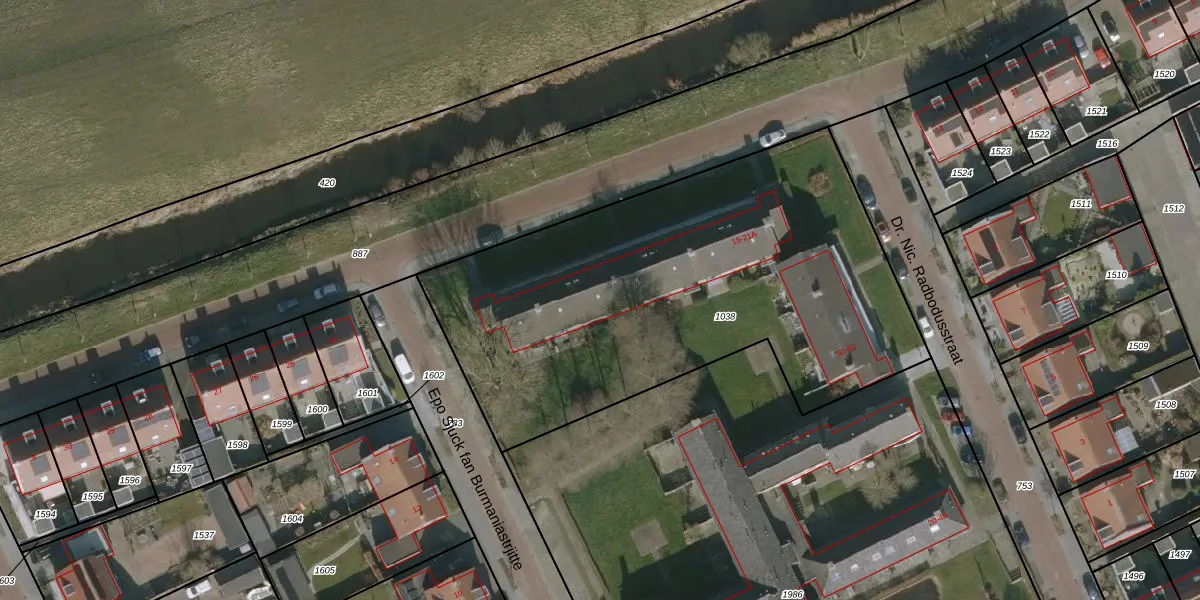 Het perceel waarop het adres ligt is DKM00-C-1038. De afkorting 'DKM00' staat voor kadastrale gemeente Dokkum. De gemiddelde perceeloppervlakte in de kadastrale gemeente Dokkum is 1422,52 m². Dit perceel is met zijn 2570 m² dus groter dan gemiddeld. Het grootste perceel in de kadastrale gemeente is 16,2 ha. Het kleinste perceel heeft een oppervlakte van 0 m². Er zijn 20 adressen aanwezig op het perceel. In de Basisregistratie Kadaster (BRK) werden de grenzen van het perceel geregistreerd op 15-01-1998.