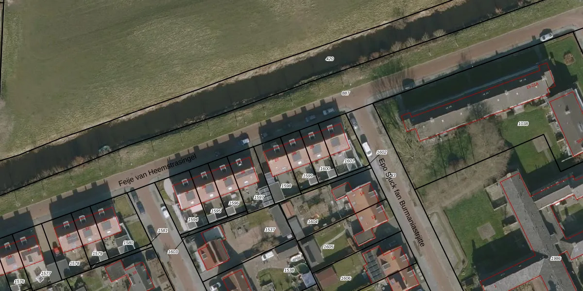 Gebruik de zoekbalk of klik op een perceel voor informatie over de adressen binnen dit perceel.