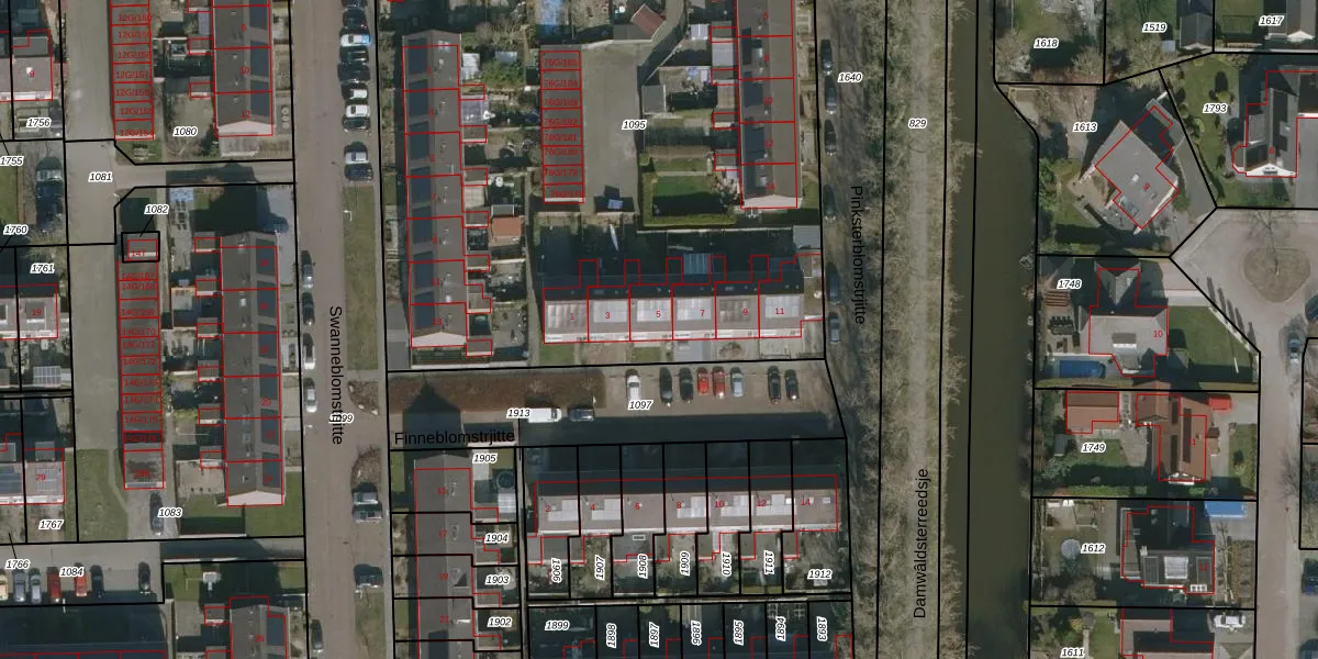 Finneblomstrjitte 5 is gelegen op kadastraal perceel DKM00B1095. Deze kadastrale aanduiding is uniek en wordt gebruikt door het Kadaster om eigendomsrechten en andere zakelijke rechten vast te leggen. Het perceel maakt onderdeel uit van de kadastrale gemeente Dokkum.