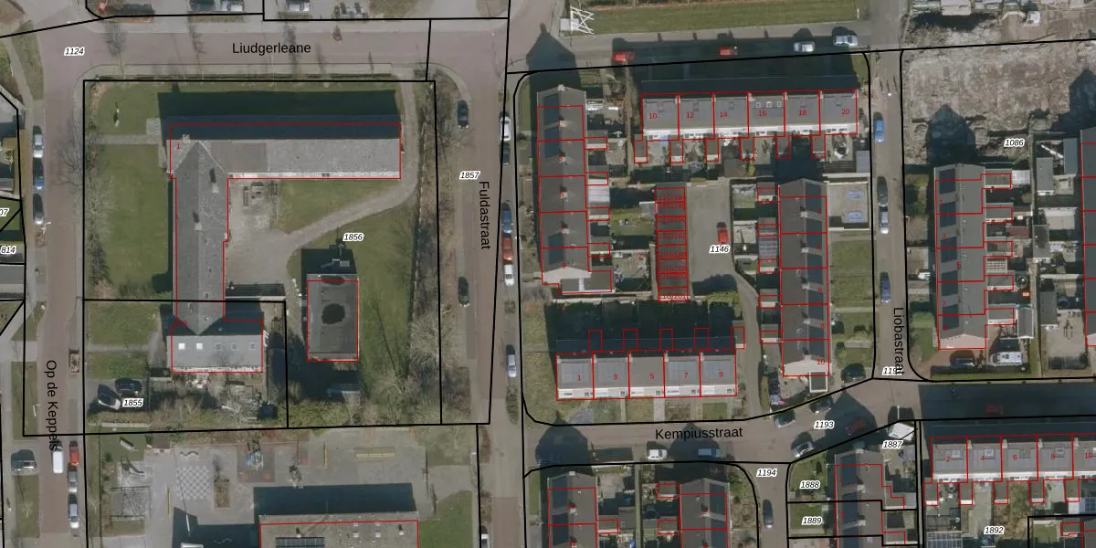 Het perceel waarop Fuldastraat 9 staat heeft een oppervlakte van 4175 m². Dit is een zeer groot perceel. De perceeloppervlakte wordt geregistreerd door het Kadaster. Gedetailleerde informatie over de maten van dit perceel kunt u vinden in het rapport Kadastrale kaart met maatvoering van Fuldastraat 9.