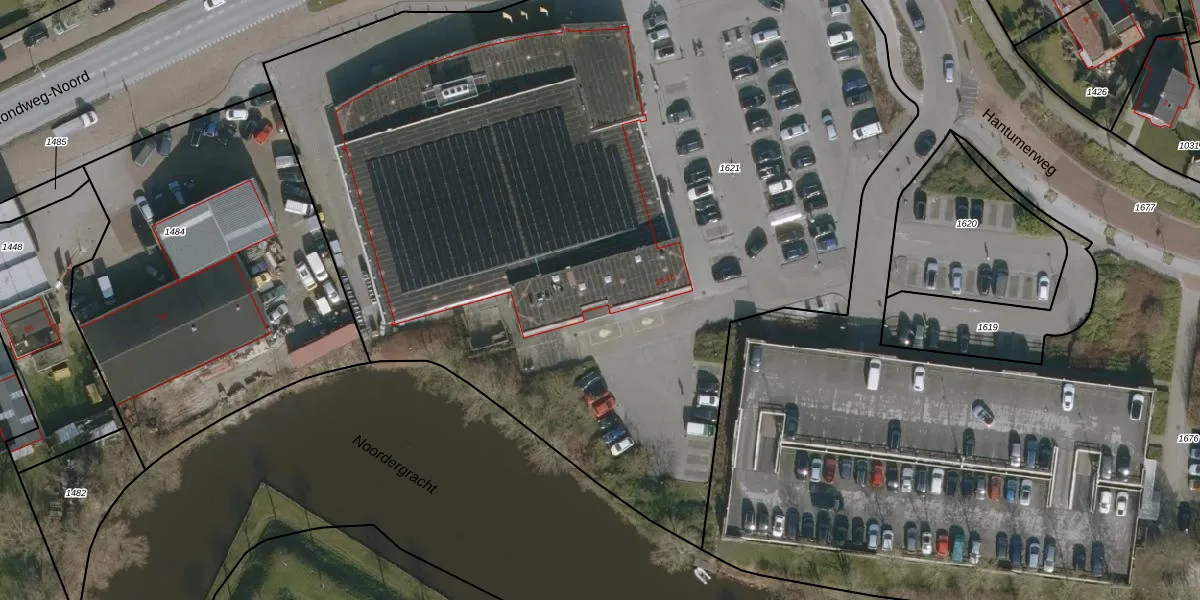 Het perceel waarop Hantumerweg 16 staat heeft een oppervlakte van 6463 m². Dit is een zeer groot perceel. De perceeloppervlakte wordt geregistreerd door het Kadaster. Gedetailleerde informatie over de maten van dit perceel kunt u vinden in het rapport Kadastrale kaart met maatvoering van Hantumerweg 16.