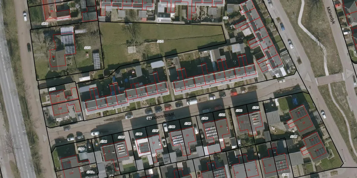 Het perceel waarop Heldersstraat 17 staat heeft een oppervlakte van 5635 m². Dit is een zeer groot perceel. De perceeloppervlakte wordt geregistreerd door het Kadaster. Gedetailleerde informatie over de maten van dit perceel kunt u vinden in het rapport Kadastrale kaart met maatvoering van Heldersstraat 17.