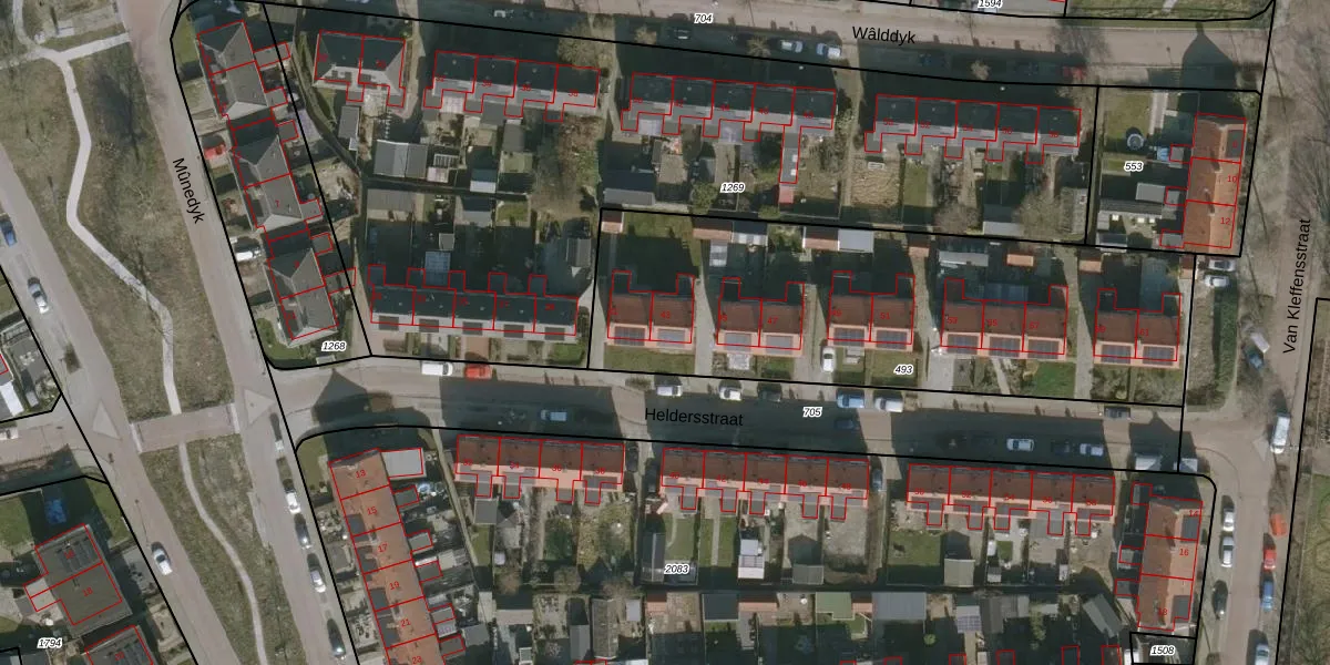 Het perceel waarop Heldersstraat 43 staat heeft een oppervlakte van 2075 m². Dit is een zeer groot perceel. De perceeloppervlakte wordt geregistreerd door het Kadaster. Gedetailleerde informatie over de maten van dit perceel kunt u vinden in het rapport Kadastrale kaart met maatvoering van Heldersstraat 43.