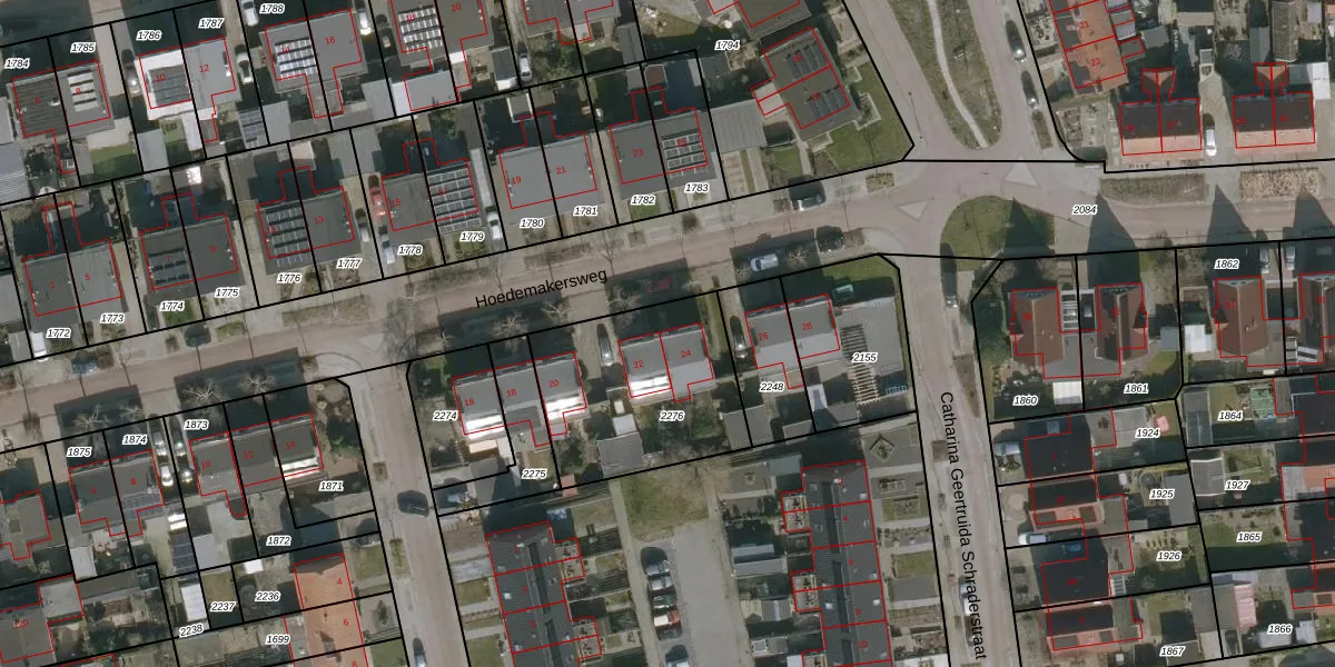 Het perceel waarop Hoedemakersweg 24 staat heeft een oppervlakte van 697 m². Dit is een groot perceel. De perceeloppervlakte wordt geregistreerd door het Kadaster. Gedetailleerde informatie over de maten van dit perceel kunt u vinden in het rapport Kadastrale kaart met maatvoering van Hoedemakersweg 24.