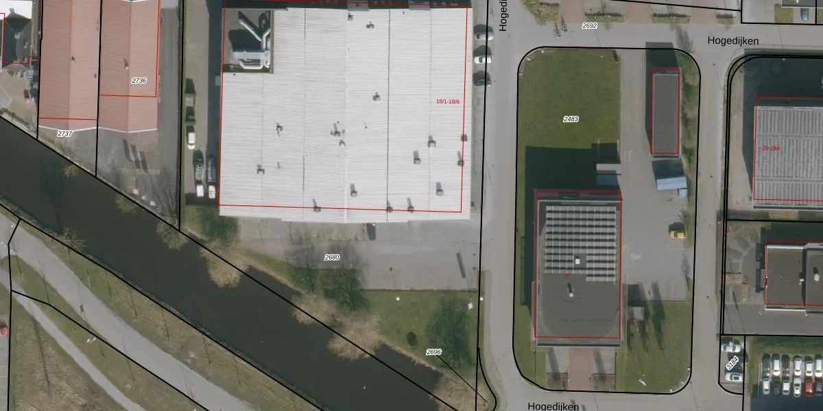Het perceel waarop Hogedijken 18-4 staat heeft een oppervlakte van 6710 m². Dit is een zeer groot perceel. De perceeloppervlakte wordt geregistreerd door het Kadaster. Gedetailleerde informatie over de maten van dit perceel kunt u vinden in het rapport Kadastrale kaart met maatvoering van Hogedijken 18-4.