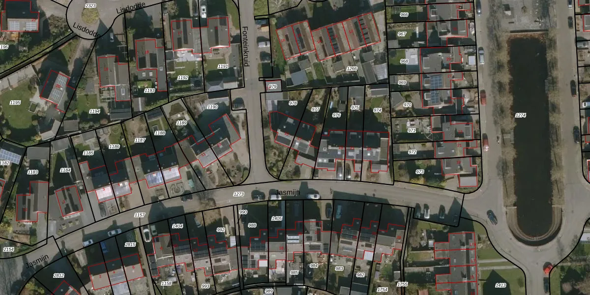 Gebruik de zoekbalk of klik op een perceel voor informatie over de adressen binnen dit perceel.