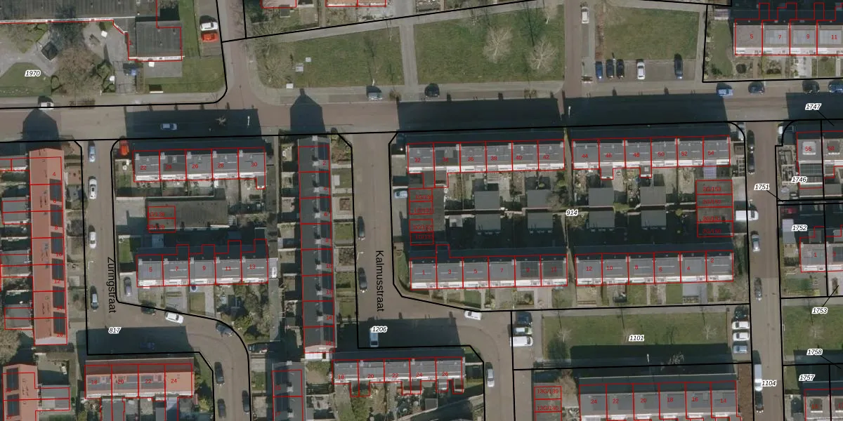 Het perceel waarop Kalmusstraat 1-G131 staat heeft een oppervlakte van 3568 m². Dit is een zeer groot perceel. De perceeloppervlakte wordt geregistreerd door het Kadaster. Gedetailleerde informatie over de maten van dit perceel kunt u vinden in het rapport Kadastrale kaart met maatvoering van Kalmusstraat 1-G131.