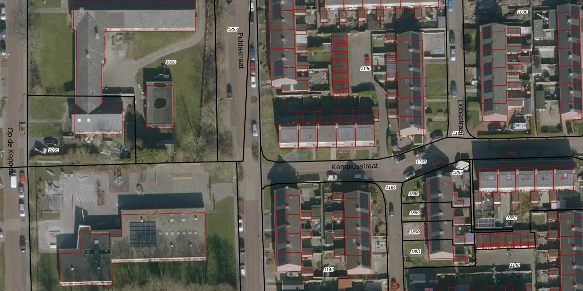 Het perceel waarop Kempiusstraat 1 staat heeft een oppervlakte van 4175 m². Dit is een zeer groot perceel. De perceeloppervlakte wordt geregistreerd door het Kadaster. Gedetailleerde informatie over de maten van dit perceel kunt u vinden in het rapport Kadastrale kaart met maatvoering van Kempiusstraat 1.