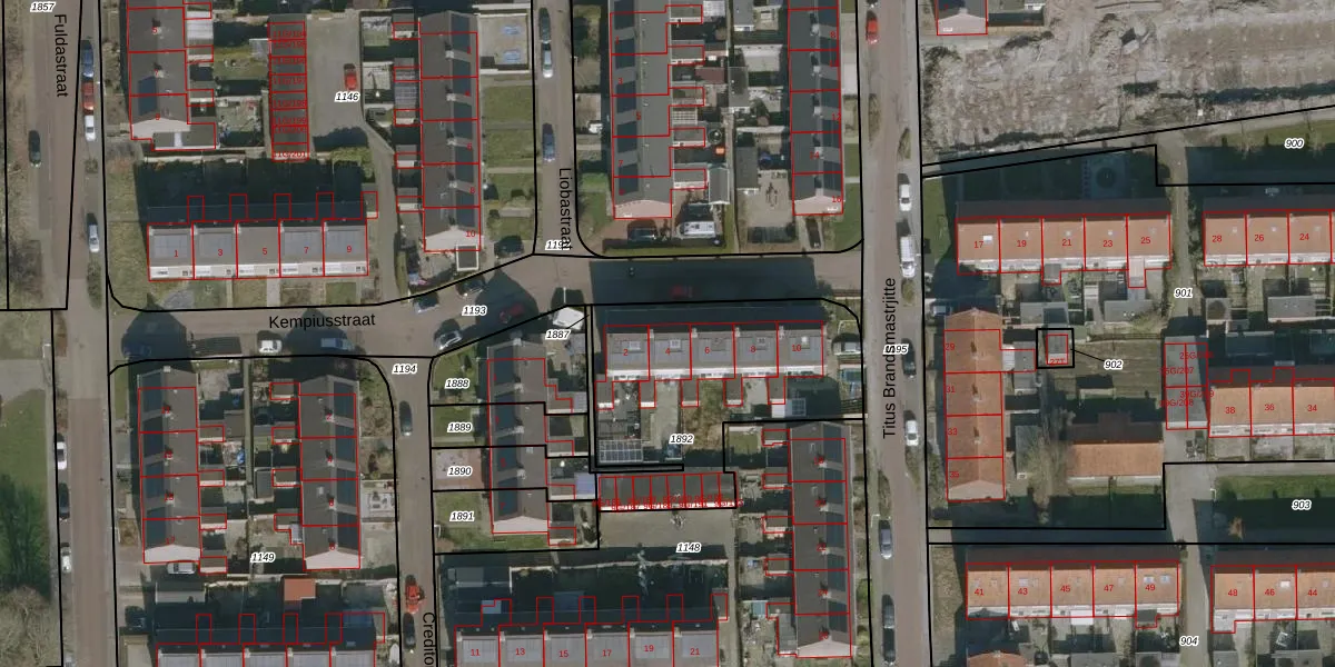 Het perceel waarop Kempiusstraat 4 staat heeft een oppervlakte van 957 m². Dit is een groot perceel. De perceeloppervlakte wordt geregistreerd door het Kadaster. Gedetailleerde informatie over de maten van dit perceel kunt u vinden in het rapport Kadastrale kaart met maatvoering van Kempiusstraat 4.