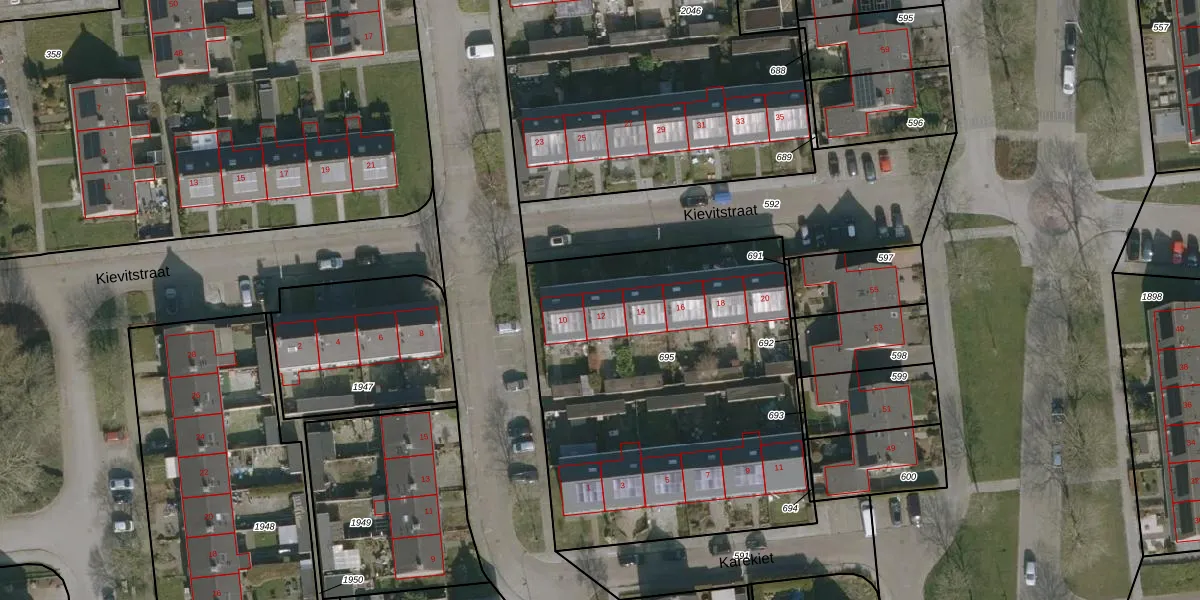 Het perceel waarop Kievitstraat 12 staat heeft een oppervlakte van 2060 m². Dit is een zeer groot perceel. De perceeloppervlakte wordt geregistreerd door het Kadaster. Gedetailleerde informatie over de maten van dit perceel kunt u vinden in het rapport Kadastrale kaart met maatvoering van Kievitstraat 12.